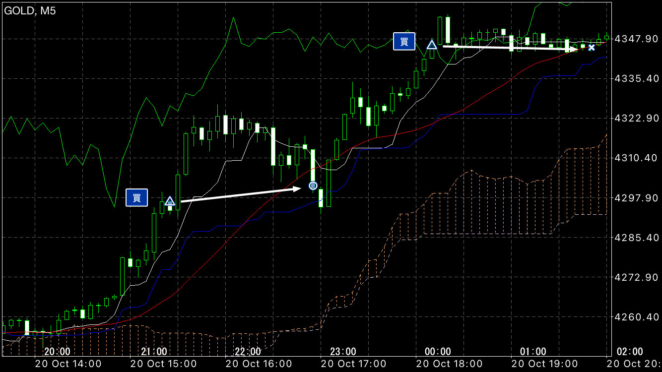 力強い上昇タイミングで買い注文。
