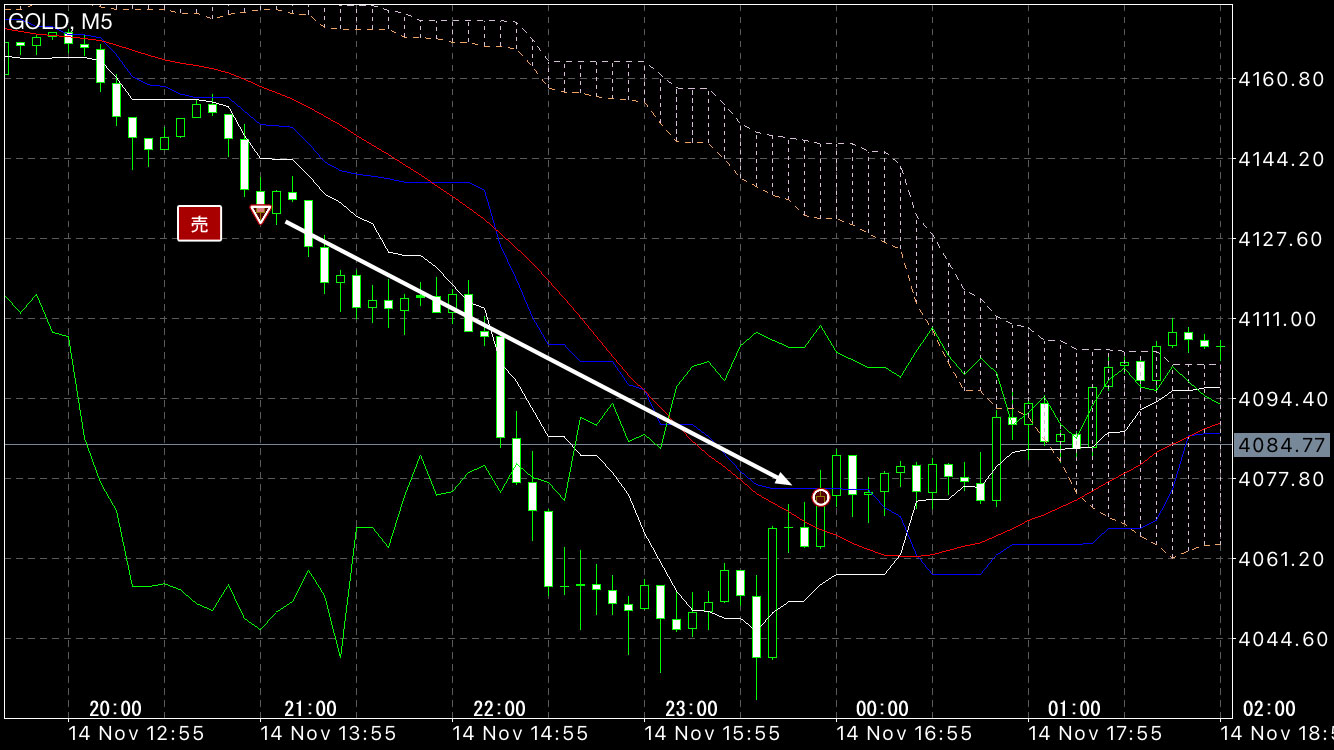更なる利益の可能性も残しつつ、MA越えて利確したものの。