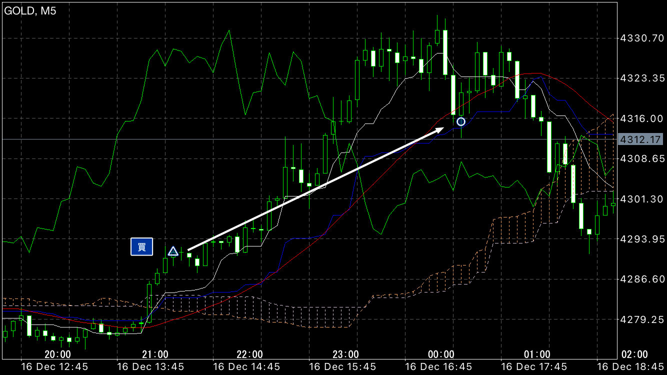 上昇タイミングで買い注文。