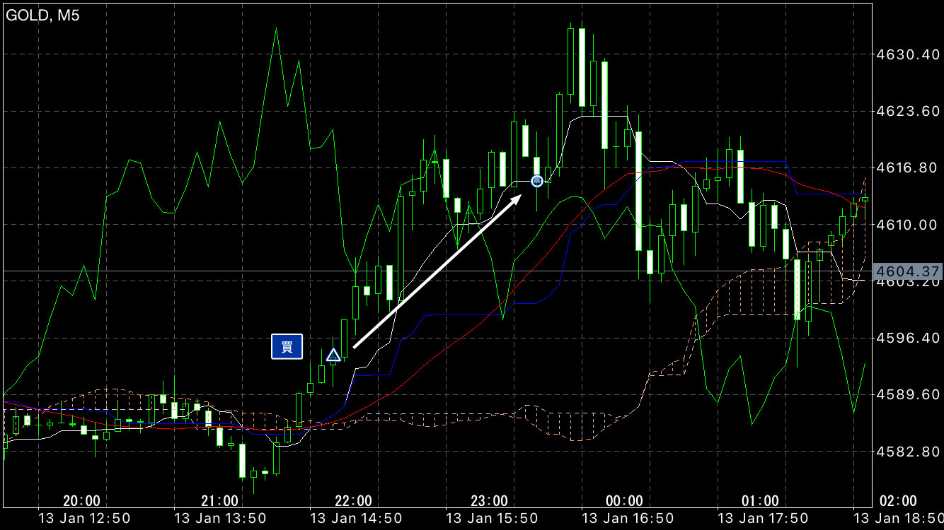 そのまま上昇トレンドとなり、手堅く戻りで利確。