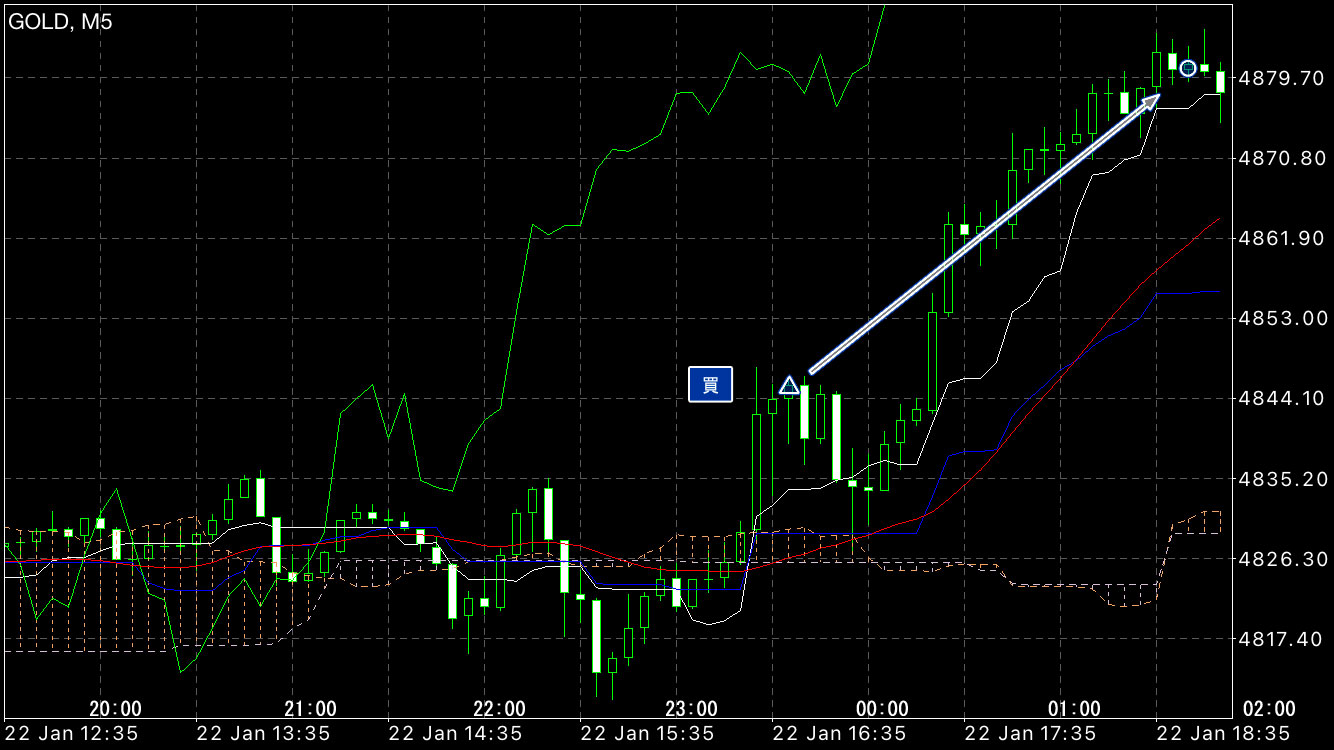 上昇タイミングで買い注文。