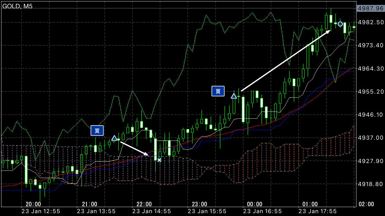 上昇タイミングで買い注文。