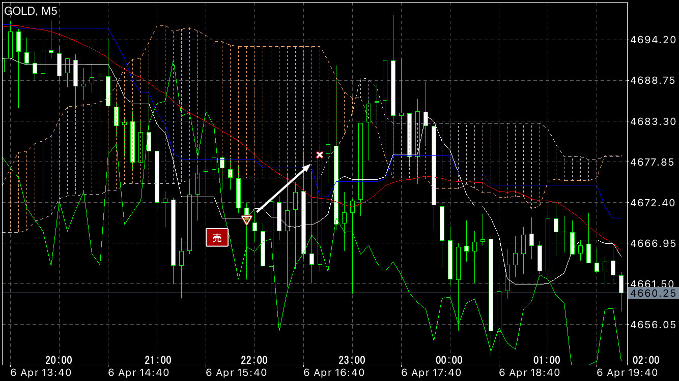 しかし方向感変わってMA越えの損切り。