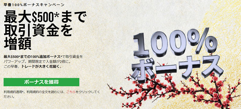 既存の100%入金ボーナスに加えて、上限500ドルまでの100%追加ボーナス!
